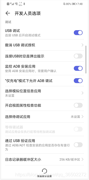 2、开启手机开发者模式和USB调试(每种手机不一样,可百度)