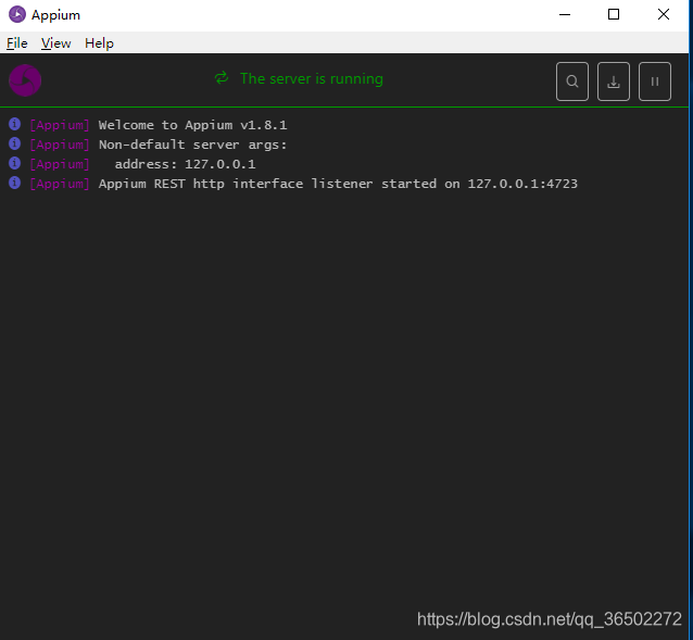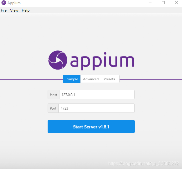 1、双击appium打开启动页面,如果appium是在本机电脑host:127.0.0.1 port:4723