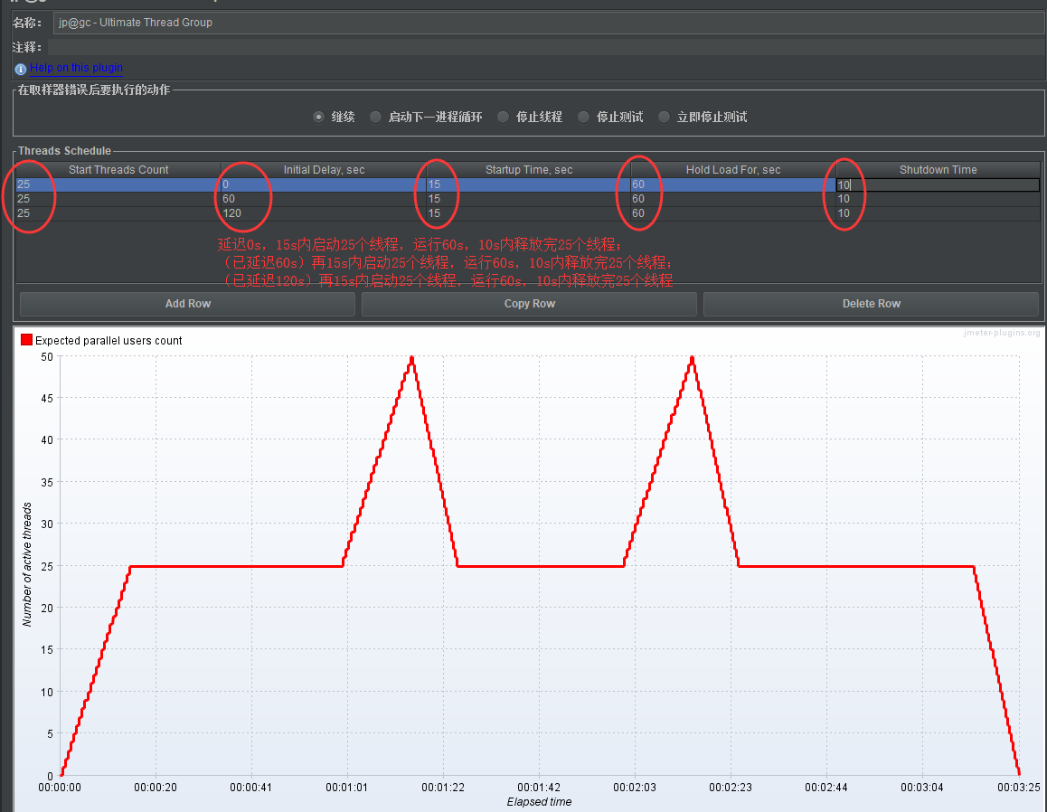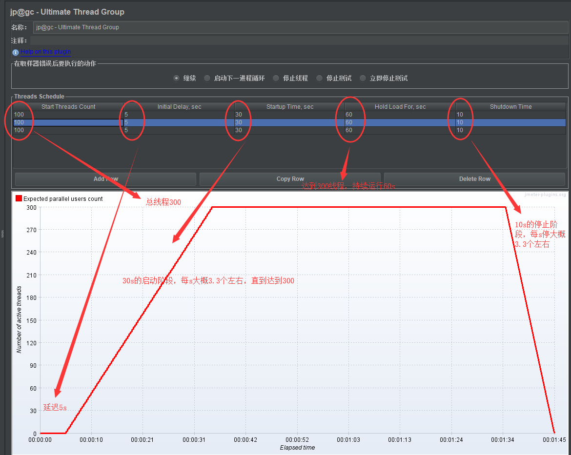 提供了一个'Threads Schedule' 线程计划表,您可以在其中配置不同的线程组。 您可以决定