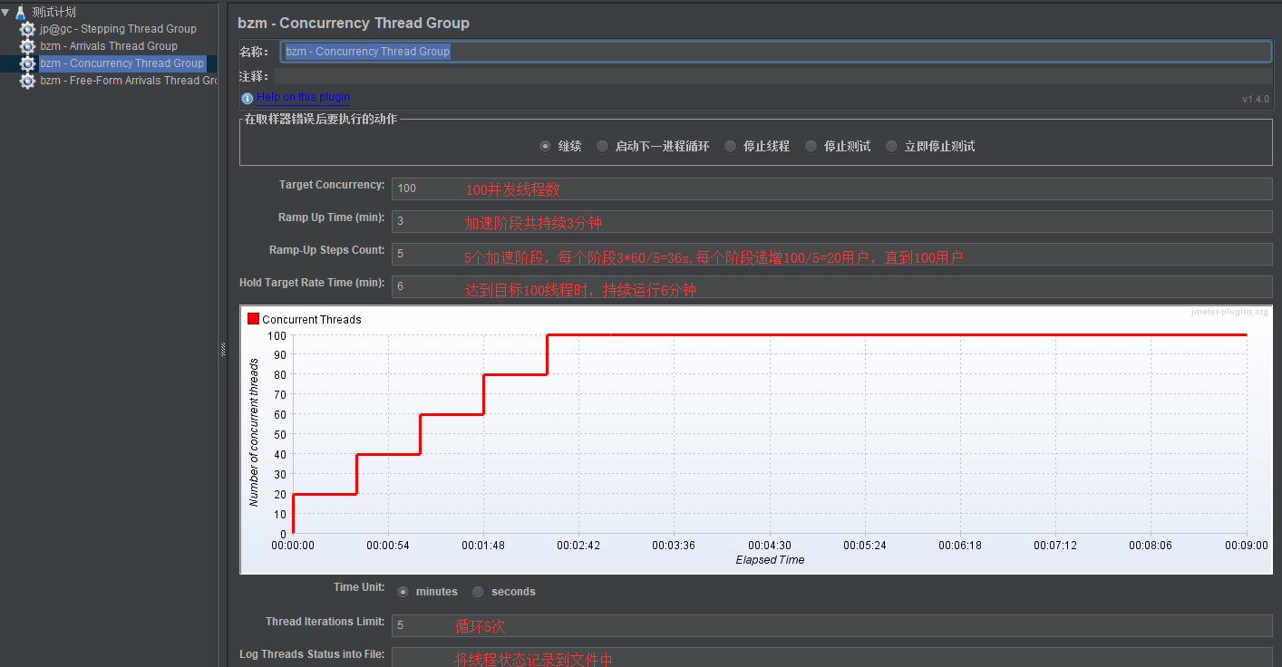 5、并发线程组bzm - Concurrency Thread Group阶梯式加压