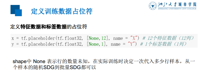 x=tf.placeholder(tf.float32,[None,12],name="X")   # 12个特征数据y=tf.placeholder(tf.float32,[None,1],name="Y")   # 1个标签数据### 创建变量 定义模型结构# 定义了一个命令空间