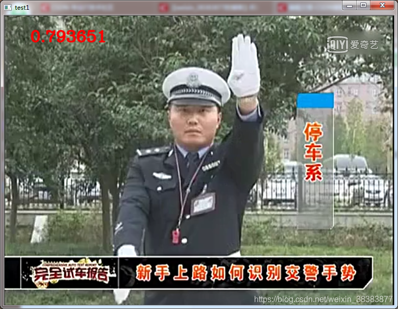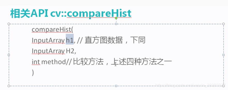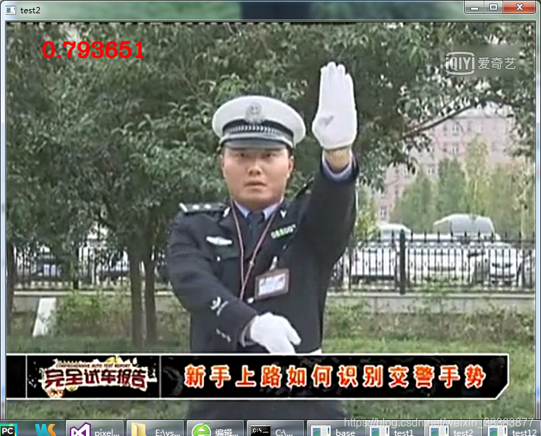 {Mat base, test1, test2;Mat hsvbase, hsvtest1, hsvtest2;base = imread("E:\\vs2015\\opencvstudy\\24police2.png");if (base.empty()){cout << "could not load the src image!" << endl;return -1;}test1 = imread("E:\\vs2015\\opencvstudy\\24police3.png");test2 = imread("E:\\vs2015\\opencvstudy\\24police4.png");cvtColor(base, hsvbase, CV_BGR2HSV);cvtColor(test1, hsvtest1, CV_BGR2HSV);cvtColor(test2, hsvtest2, CV_BGR2HSV);int h_bins = 50;int s_bins = 50;int histSize[] = { h_bins,s_bins };//hue varies from 0 to 179,saturation from 0 to 255float h_ranges[] = { 0,180 };float s_ranges[] = { 0,256 };const float* range[] = { h_ranges,s_ranges };//Use the 0-th or 1-st channelsint channels[] = { 0,1 };MatND hist_base; //MatND表示多通道MatND hist_test1;MatND hist_test2;calcHist(&hsvbase,1, channels, Mat(), hist_base,2, histSize, range, true, false);normalize(hist_base, hist_base, 0, 1, NORM_MINMAX, -1, Mat()); //Mat() 代表mask为空calcHist(&hsvtest1, 1, channels, Mat(), hist_test1, 2, histSize, range, true, false);normalize(hist_test1, hist_test1, 0, 1, NORM_MINMAX, -1, Mat()); //Mat() 代表mask为空calcHist(&hsvtest2, 1, channels, Mat(), hist_test2, 2, histSize, range, true, false);normalize(hist_test2, hist_test2, 0, 1, NORM_MINMAX, -1, Mat()); //Mat() 代表mask为空double basebase = compareHist(hist_base, hist_base, CV_COMP_CORREL);double basetest1 = compareHist(hist_base, hist_test1, CV_COMP_CORREL);double basetest2 = compareHist(hist_base, hist_test1, CV_COMP_CORREL);double test1test2 = compareHist(hist_test1, hist_test2, CV_COMP_CORREL);Mat test12;test2.copyTo(test12);putText(base, convertToString(basebase), Point(50, 50), CV_FONT_HERSHEY_COMPLEX, 1, Scalar(0, 0, 255), 2, LINE_AA);putText(test1, convertToString(basetest1), Point(50, 50), CV_FONT_HERSHEY_COMPLEX, 1, Scalar(0, 0, 255), 2, LINE_AA);putText(test2, convertToString(basetest2), Point(50, 50), CV_FONT_HERSHEY_COMPLEX, 1, Scalar(0, 0, 255), 2, LINE_AA);putText(test12, convertToString(basebase), Point(50, 50), CV_FONT_HERSHEY_COMPLEX, 1, Scalar(0, 0, 255), 2, LINE_AA);imshow("base", base);imshow("test1", test1);imshow("test2", test2);imshow("test12", test12);waitKey();return 0;