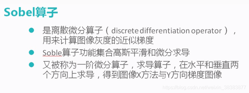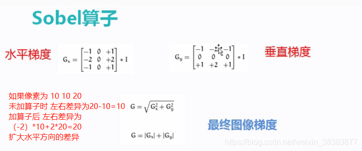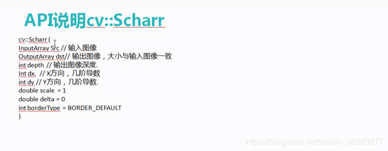 {Mat src = imread("E:\\vs2015\\opencvstudy\\1.jpg", 1);if (src.empty()){cout << "could not load the src image!" << endl;return -1;}char *input_title = "input Image";imshow(input_title, src);Mat blur_image;GaussianBlur(src, blur_image, Size(3, 3), 0, 0);Mat gray_image;cvtColor(blur_image, gray_image,CV_BGR2GRAY);imshow("gray_image", gray_image);Mat xgrad_sobel, ygrad_sobel;Sobel(gray_image, xgrad_sobel, CV_16S, 1, 0, 3); //x方向梯度Sobel(gray_image, ygrad_sobel, CV_16S, 0, 1, 3); //y方向梯度convertScaleAbs(xgrad_sobel, xgrad_sobel);convertScaleAbs(ygrad_sobel, ygrad_sobel);imshow("xgrad_sobel", xgrad_sobel);imshow("ygrad_sobel", ygrad_sobel);Mat xygrad_sobel;addWeighted(xgrad_sobel, 0.5, ygrad_sobel, 0.5, 0, xygrad_sobel);imshow("xygrad_sobel", xygrad_sobel);Mat xygrad_sobel2 = Mat(xgrad_sobel.size(), xgrad_sobel.type());int width = xgrad_sobel.cols;int height = xgrad_sobel.rows;for (int row = 0; row < height; row++){for (int col = 0; col < width; col++){int xg = xgrad_sobel.at<uchar>(row, col);int yg = ygrad_sobel.at<uchar>(row, col);int xy = xg + yg;xygrad_sobel2.at<uchar>(row, col) = saturate_cast<uchar>(xy);}}imshow("xygrad_sobel2", xygrad_sobel2);//Scharr算子//Mat x2grad_sobel, y2grad_sobel;//Scharr(gray_image, x2grad_sobel, CV_16S, 1, 0); //x方向梯度//Scharr(gray_image, y2grad_sobel, CV_16S, 0, 1); //y方向梯度//convertScaleAbs(x2grad_sobel, x2grad_sobel);//convertScaleAbs(y2grad_sobel, y2grad_sobel);//imshow("x2grad_sobel", x2grad_sobel);//imshow("y2grad_sobel", y2grad_sobel);//Mat xy2grad_sobel;//addWeighted(x2grad_sobel, 0.5, y2grad_sobel, 0.5, 0, xy2grad_sobel);//imshow("xy2grad_sobel", xy2grad_sobel);waitKey(0);return 0;}