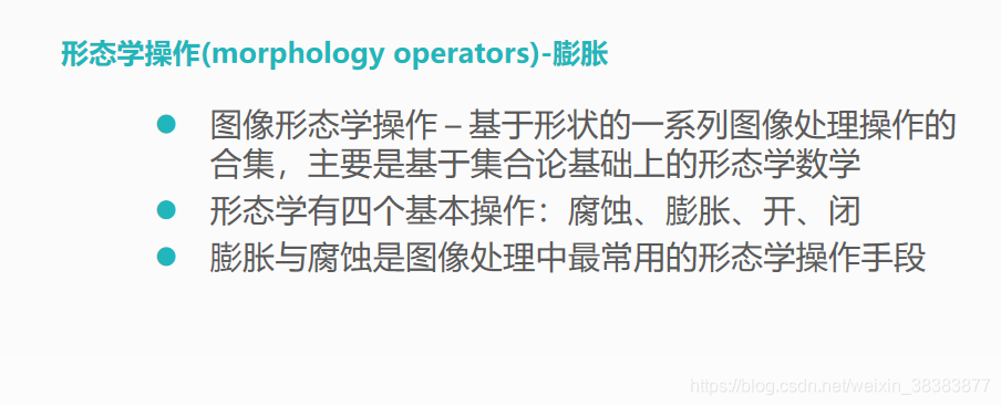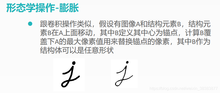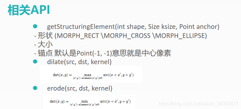 {int s = element_size * 2 + 1;Mat structureElement = getStructuringElement(MORPH_RECT, Size(s,s), Point(-1, -1));dilate(src, dst_dilate, structureElement, Point(-1, -1),1);//erode(src, dst_erode, structureElement, Point(-1, -1), 1);imshow(output_title, dst_dilate);/*imshow(output_title, dst_erode);*/return;}