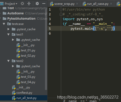if __name__ == "__main__":pytest.main(['-s',''])"C:\Program Files\Python35\python.exe" C:/Users/wangli/PycharmProjects/PytestAutomation/testcase/run_all_test.py
