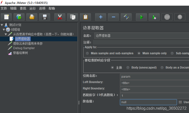 我们想从接口中提取一些想用的东西,不习惯用正则提取器和json提取器,今天我们来介绍下边界提取器,相对前者较简单些。它通过左右边界来提取需要的内容,它可以匹配任何格式的内容,如文本、json、xpath、html等等,使用也很简单,分别填写要提取内容的左右边界即可,很灵活