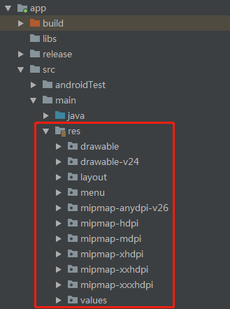 这个目录下的内容就有点多了。简单点说,就是你在项目中使用到的所有图片,布局,字符串等资源都要存放在这个目录下。