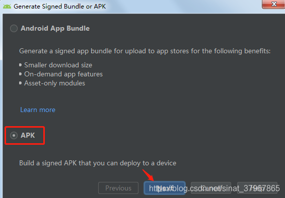 真正发布软件时我们需要生成自己密钥签名的release版apk,可以通过菜单栏build>Generate Signed Bundle /APK打包