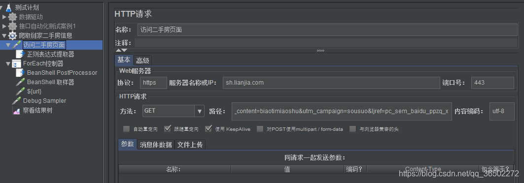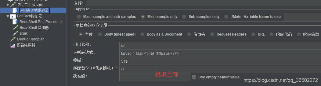 1、正则提取器+ForEach控制器+BeanShell PostProcessor+BeanShell 取样器,爬取网站信息并写入到csv中