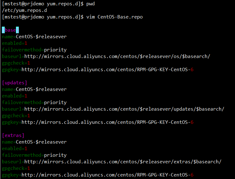 3. /etc/yum.repos.d 目录下有yum源配置文件,一般使用的是阿里云镜像:
