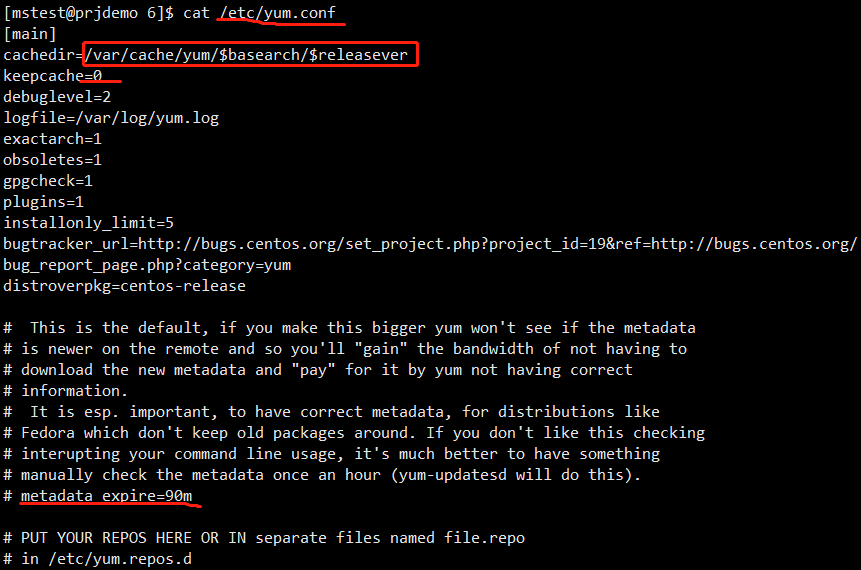 而缓存元数据好处则是当下一次用户使用yum请求安装程序包时可以节约带宽,无需再次重新请求获取全部的元数据文件,并且可以提高本地分析程序包的速度。