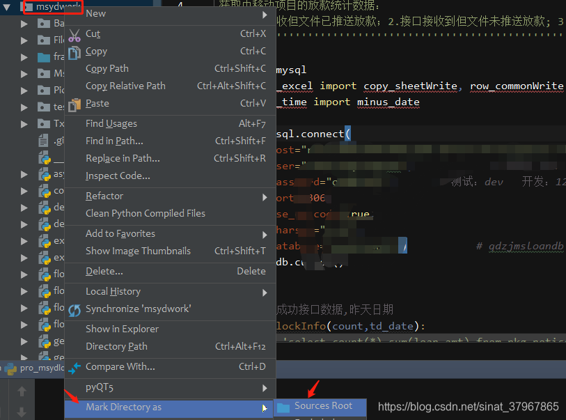 为了让在PyCharm中不报错,可以将包/文件夹设为 sources Root