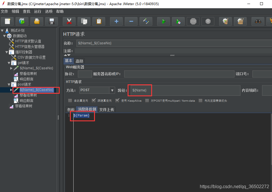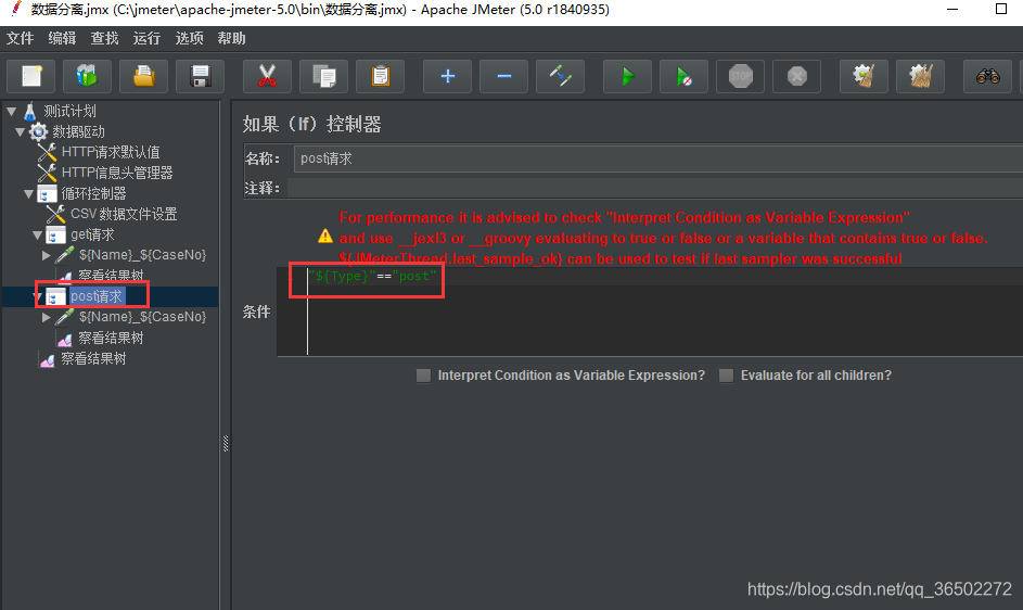 POST 条件语句设置为:"${Type}"=="post"其中 ${Type}表示引用 csv 中的 Type中的值