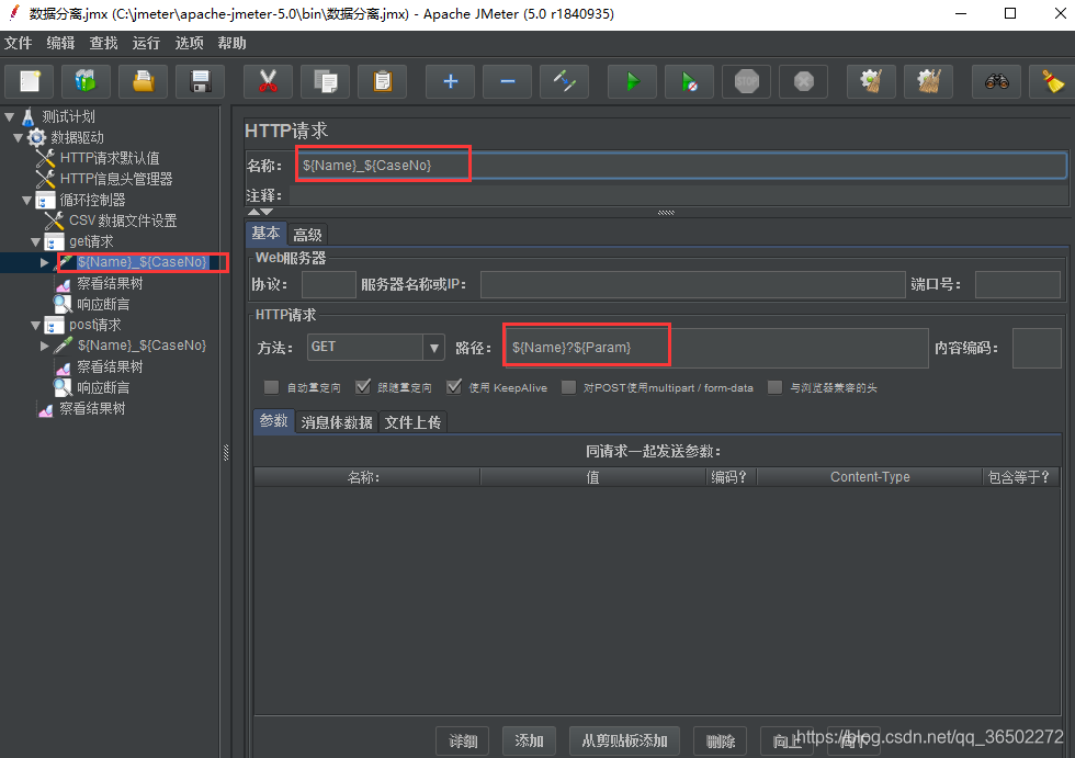 1、新建一个线程组,命名为:数据驱动