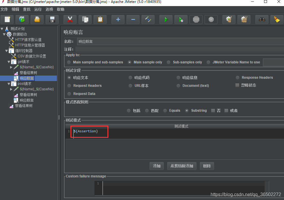 GET请求喝POST请求下分别设置断言${Assertion} =cvs中Assertion