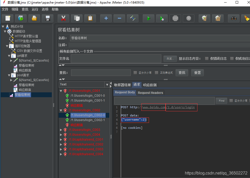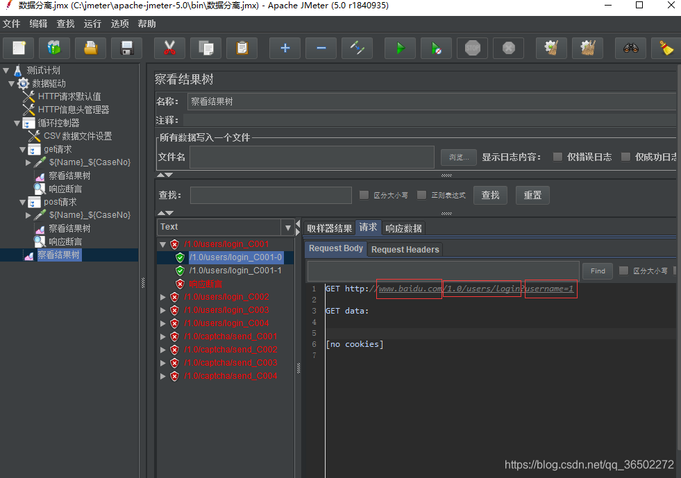这样简单的操作就实现了Jmeter接口自动化的数据分离,简单的Jmeter配置+csv用例数据