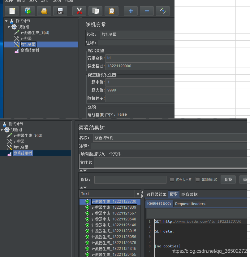 随机最小值是1,随机最大值是9999,变量输出格式18221120000,生成变量为不同的手机号后四位,线程组设置并发或循环10次