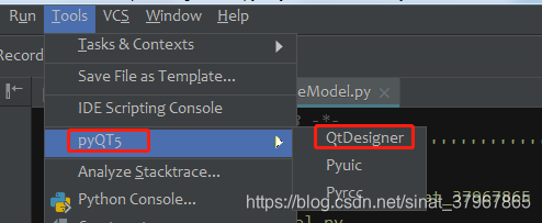1、完成以上步骤之后,点击 Tools -》External Tools -》pyQT5 启动我们的QtDesigner (如下图)