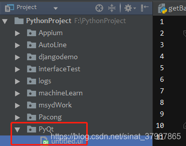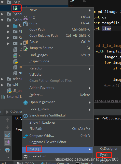 五、选择“.ui”文件,右键pyQT5>Pyuic ,将“.ui”文件转为“.py”文件