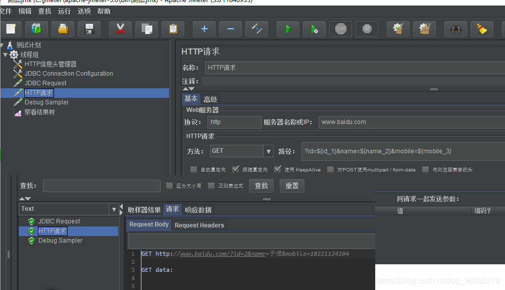 值得注意的是,在jdbc request中可以通过这个名称选择合适的连接池进行使用。