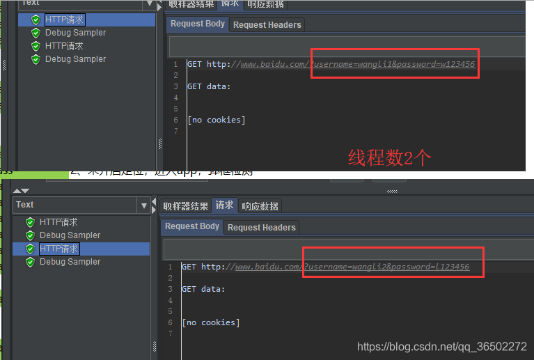线程设置2次和循环设置2次,2次采样器传参和结果一样