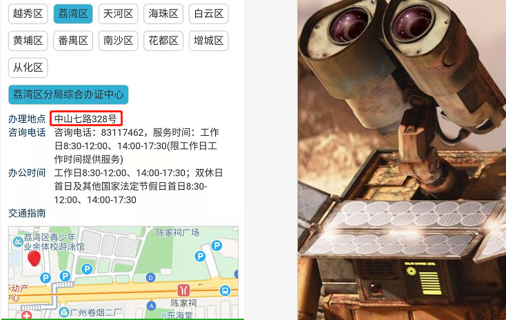 1.符合申办条件的人员现场办理需通过网上预约(可选择扫描右下角二维码进入“市内迁移”事项,或可通过A:广州金盾网 http://www.gzjd.gov.cn/;