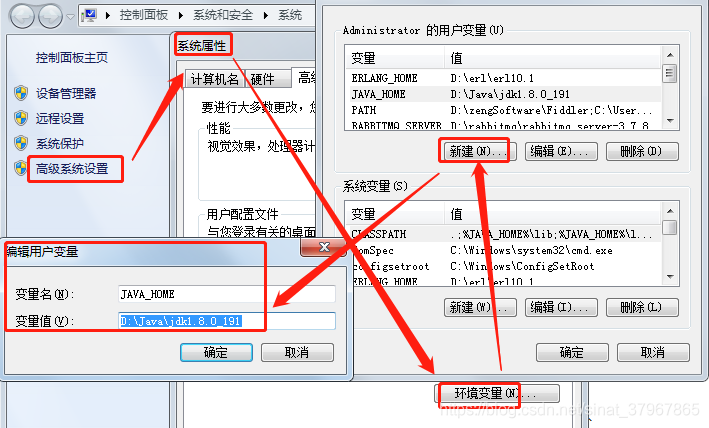 1、新建JAVA_HOME:D:\Java\jdk1.8.0_191(本人jdk目录路径)