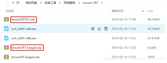 所以直接下载红框标记的文件,SecureCRT8.1.zip中有64位和32位安装包,SecureCRT keygen.zip是注册机