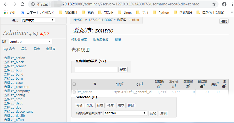 上一篇文章我们介绍了如何在linux测试环境安装bug管理工具禅道,现在我们来介绍一下如何访问禅道的数据库,访问数据库有什么用呢?首先,我们可以更改我们安装后的管理系统的名称(改为自己公司名称),此外为了节省页面手动操作时间,我们可以导入数据(比如增加组织、人员、测试案例等等),访问数据库的主要流程如下: