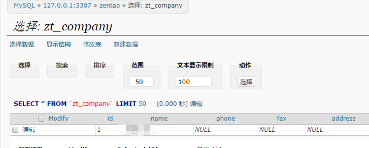 比如我们要更改登陆页面和里面的公司名称,我们可以在数据库zt_company的name字段改成自己公司名称