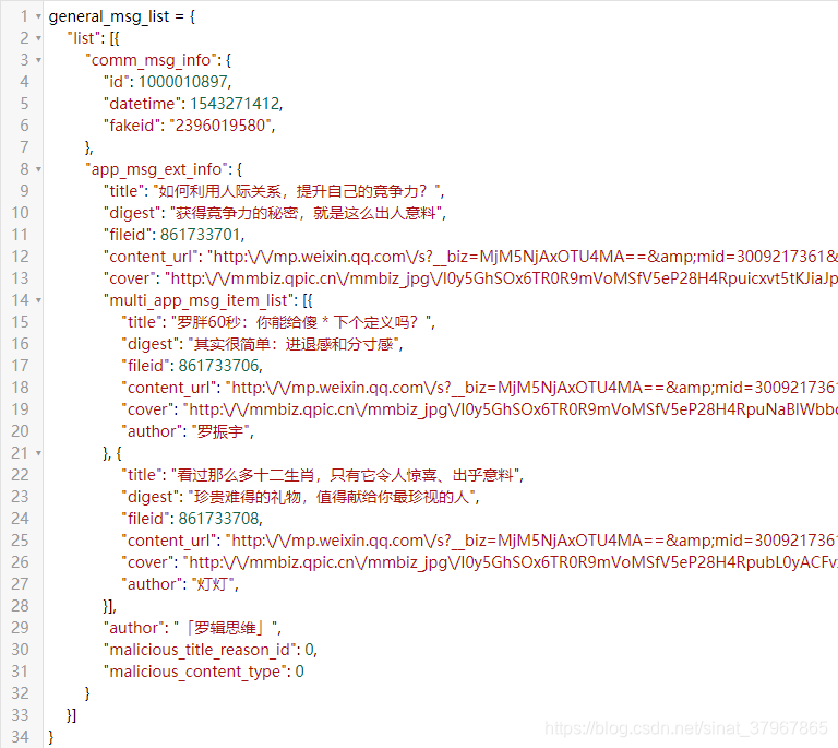 历史文章API返回的json信息: