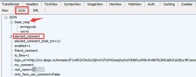base_resp是返回状态情况,elected_comment才是评论的信息