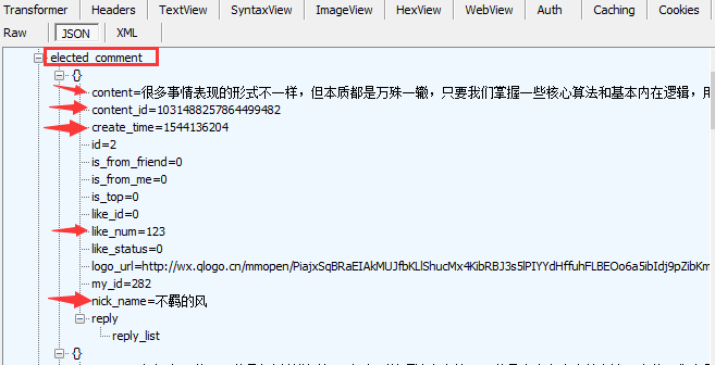 elected_comment下面的详细信息,当评论有回复时,reply_list有信息