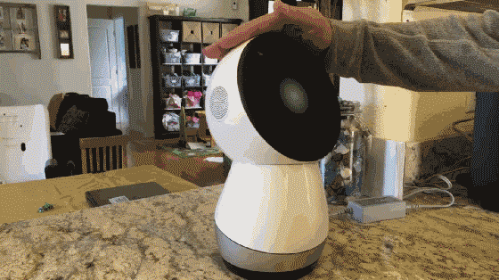 Jibo可以通过感应你的位置把脸转向你,它的显示屏上还会根据不同的情景显示出不同的表情和不同的语气。