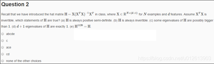 而trace(H)等于所有特征值的和,其值为d+1,而特征值只能为0或1,所以必有d+1个特征值恰好是1;