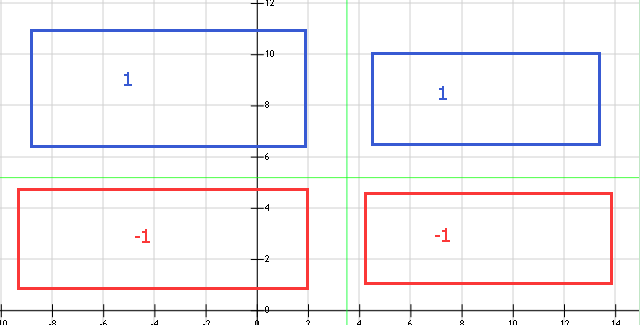 又说,包含在S中的是1,不在S中的是-1;也就是给每个区域赋值了分类标记,如下图:
