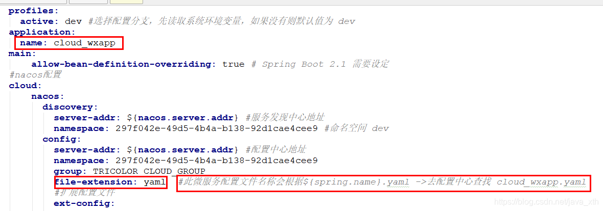 其次还有一个比较关键的点: 配置文件的命名: nacos里配置的文件名称要和你项目配置的项目名和扩展名的值相同