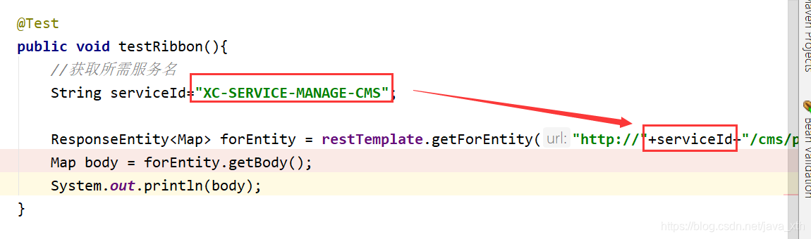 3.测试。 rest请求路径上更换服务名