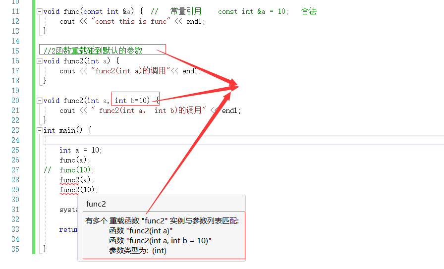 }void func2(int a, int b=10) {cout << " func2(int a, int b)的调用" << endl;