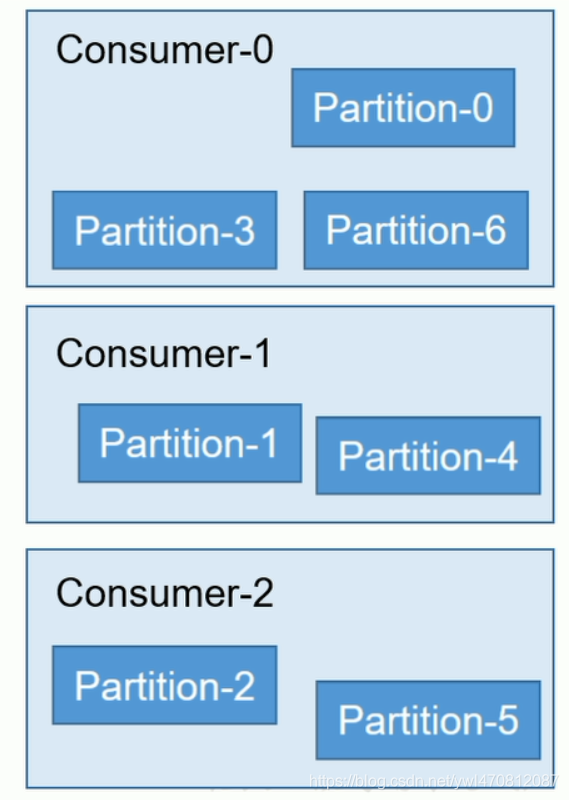 一个 consumer group 中有多个 consumer,一个 topic 有多个 partition,所以必然会涉及到 partition 的分配问题,即确定那个 partition 由哪个 consumer 来消费。