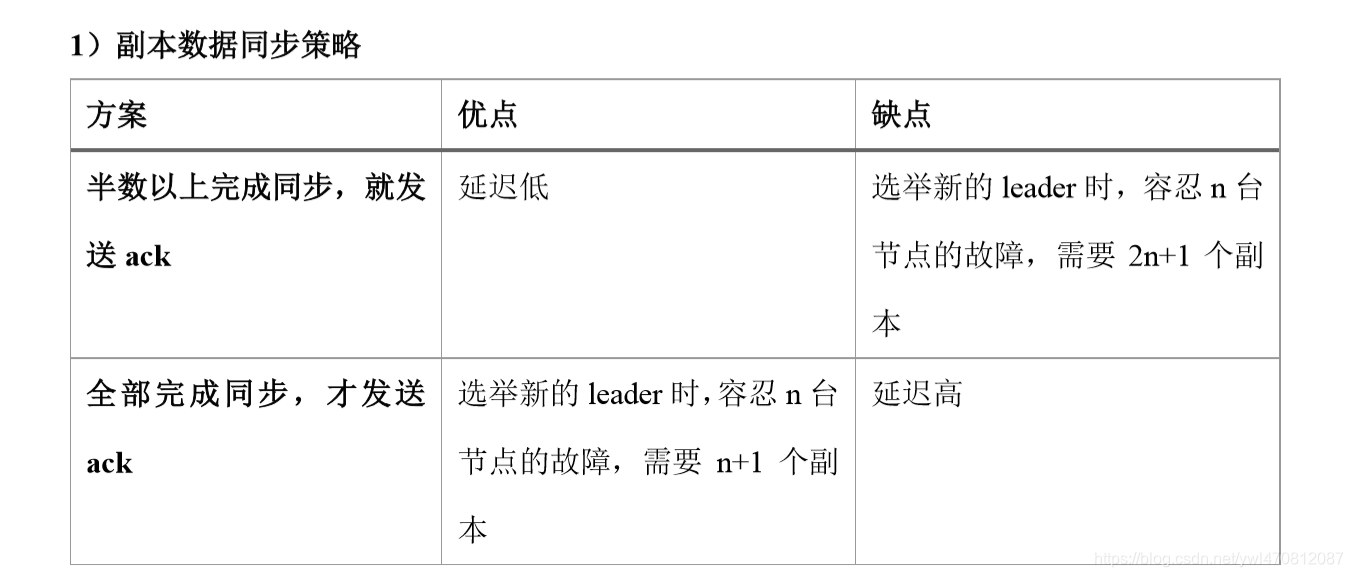 1.同样为了容忍 n 台节点的故障,第一种方案需要 2n+1 个副本,而第二种方案只需要 n+1个副本,而 Kafka 的每个分区都有大量的数据,第一种方案会造成大量数据的冗余。