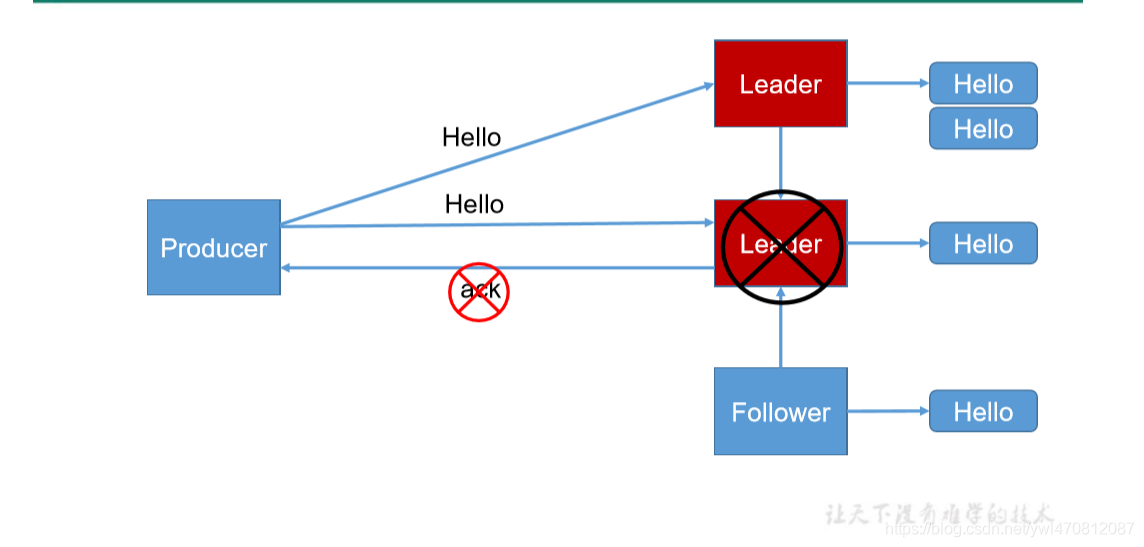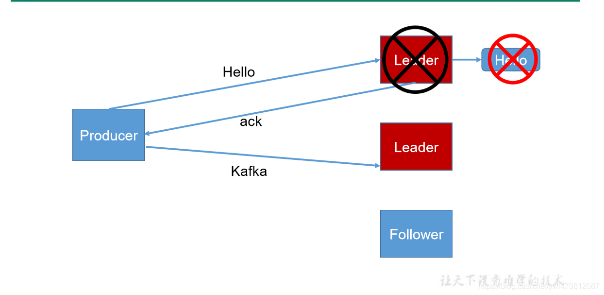 1:producer 等待 broker 的 ack,partition 的 leader 落盘成功后返回 ack,如果在 follower同步成功之前 leader 故障,那么将会丢失数据;