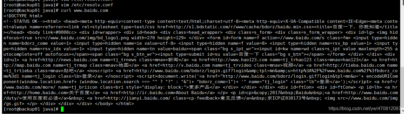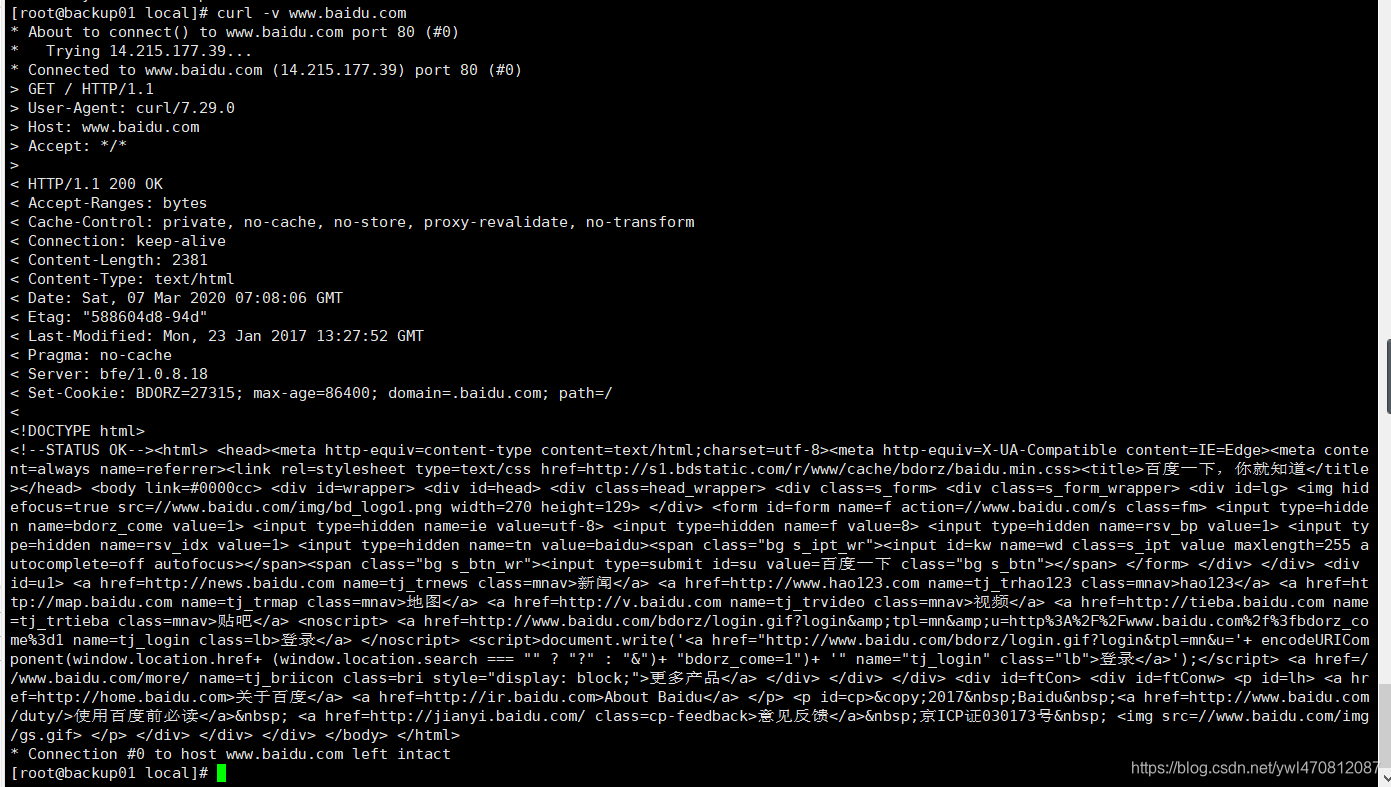 下面我们使用这个curl名师实际操作一下,比如我能直接访问百度
