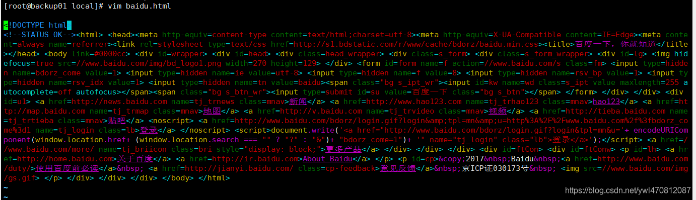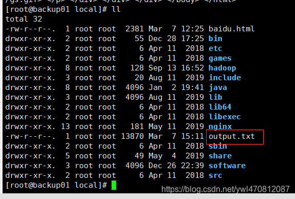 如果我们要保存这个网页我们只需要命令加一个 -o 就可以了
