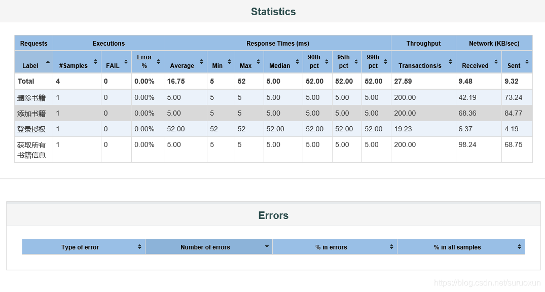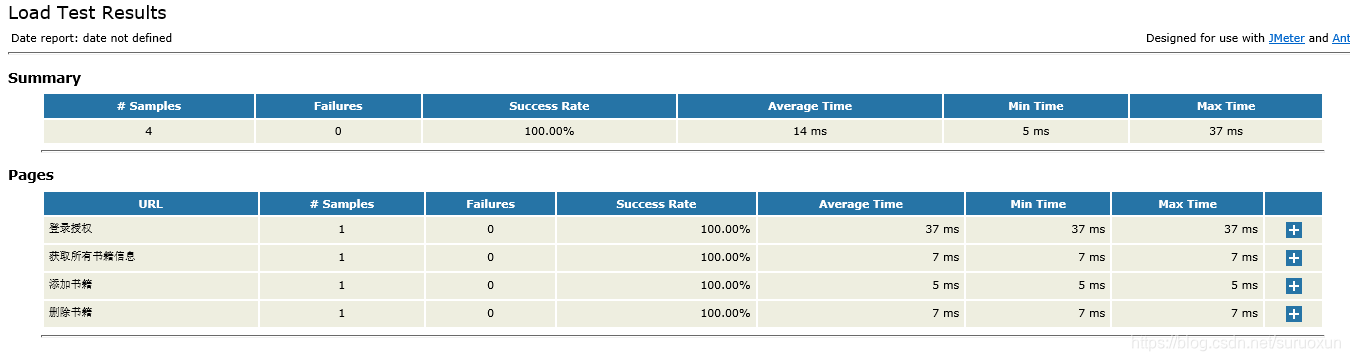 <property name="message" value="Hi!请查收下,API测试报告,如有任何疑问,请联系我,谢谢!"/><tstamp><format property="time" pattern="yyyyMMddhhmm" /></tstamp><property name="jmeter.home" value="${jmeterPath}" /><property name="jmeter.result.jtl.dir" value="${jmeterPath}\tests\report\jtl" /><property name="jmeter.result.html.dir" value="${jmeterPath}\tests\report\html" /><property name="htmlReportNameSummary" value="testReport" /><property name="jmeter.result.jtlName" value="${jmeter.result.jtl.dir}/${htmlReportNameSummary}${time}.jtl" /><property name="jmeter.result.htmlName" value="${jmeter.result.html.dir}/${htmlReportNameSummary}${time}.html" /><target name="run"><antcall target="test" /><antcall target="report" /><antcall target="sendEmail" /></target><!--执行接口测试--><target name="test"><echo>执行接口自动化测试</echo><taskdef name="jmeter" classname="org.programmerplanet.ant.taskdefs.jmeter.JMeterTask" /><jmeter jmeterhome="${jmeter.home}" resultlog="${jmeter.result.jtlName}"><!--要执行的测试脚本--><testplans dir="${jmeterPath}\tests\script" includes="ApiPerformance.jmx" /><property name="jmeter.save.saveservice.output_format" value="xml"/></jmeter></target><!--解决报告中NAN字段显示问题--><path id="xslt.classpath"><fileset dir="${jmeter.home}/lib" includes="xalan-2.7.2.jar"/><fileset dir="${jmeter.home}/lib" includes="serializer-2.7.2.jar"/></path><!--生成HTML测试报告--><target name="report"><echo>生成接口自动测试报告</echo><xslt classpathref="xslt.classpath"force="true"in="${jmeter.result.jtlName}" out="${jmeter.result.htmlName}"style="${jmeter.home}/extras/jmeter-results-detail-report_21.xsl" /><!--复制图片--><copy todir="${jmeter.result.html.dir}"><fileset dir="${jmeter.home}/extras"><include name="collapse.png" /><include name="expand.png" /></fileset></copy></target><!--自动发送邮件--><target name="sendEmail"><echo>发送自动化测试报告</echo><mail mailhost="${mailhost}"user="${username}" password="${password}" mailport="${mail_port}"subject="${mailsubject}" messagemimetype="text/html" tolist="${mail_to}"><from address="${mailfrom}" /><attachments><fileset dir="${jmeter.result.html.dir}"><include name="${htmlReportNameSummary}${time}.html"/><include name="collapse.png" /><include name="expand.png" /></fileset></attachments><message>${message}</message></mail></target></project>