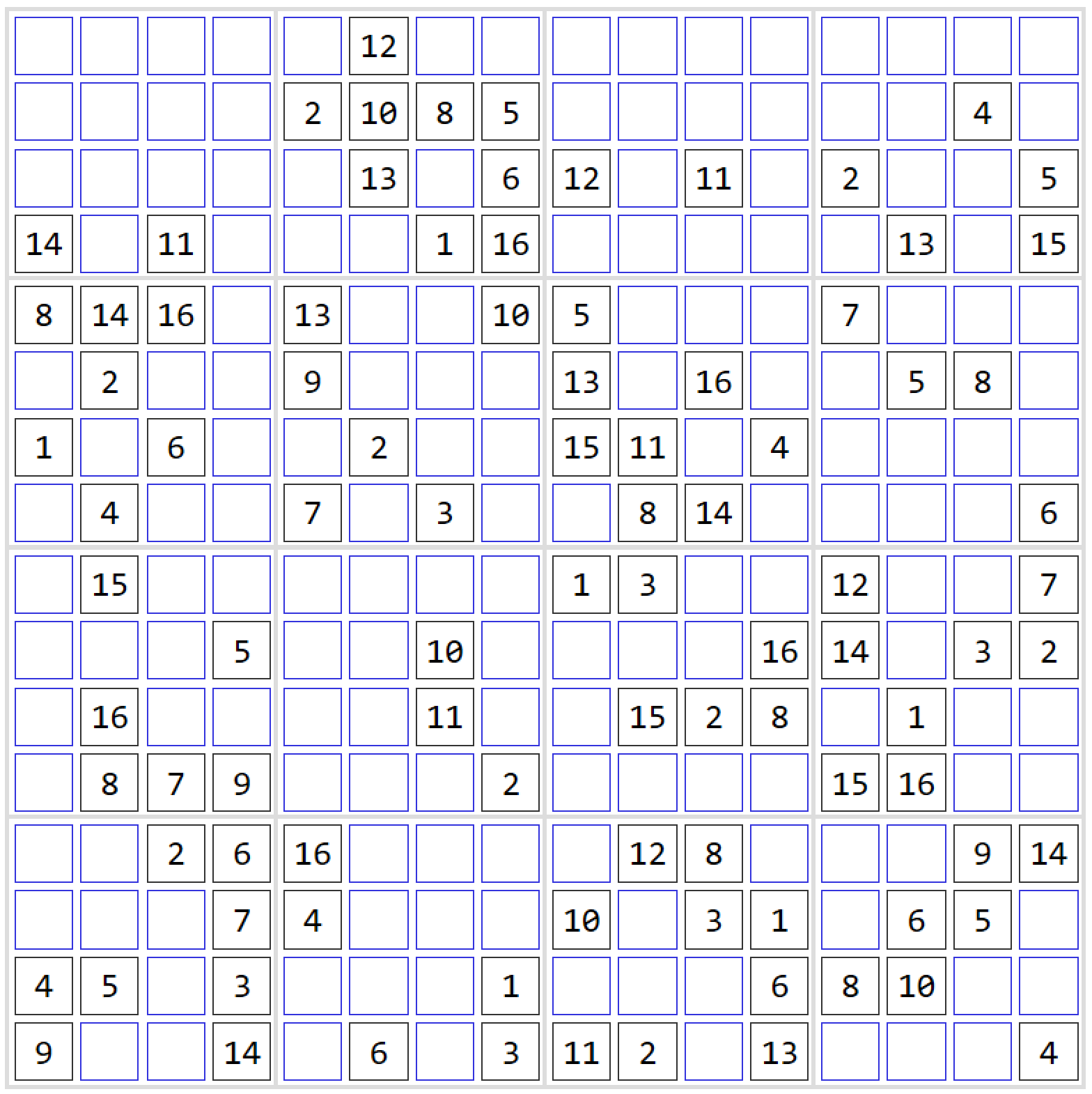{int[,] array = new int[N, N];for (int i = 0; i < N; i++){for (int j = 0; j < N; j++){array[i, j] = 0;}}// 生成一个随机的不完整数独矩阵// 1..N 个数覆盖了 NxN 的部分点for (int i = 0; i < N; i++){int temp = rnd.Next() % (N * N);array[temp / N, temp % N] = i + 1;}// 构造数独矩阵// 暴力试错法,赌徒法,回溯法int k = 0;while (true){if (k < 0){k = 0;}int row = k / N;int column = k % N;while (true){array[row, column]++;if (array[row, column] > N){// 失败!重试!array[row, column] = 0;--k;break;}else if (Is_Matched_Node(array, row, column)){++k;break;}}// 终于摸到一条大鱼!if (k == (N * N)){return new Board(array);}}
