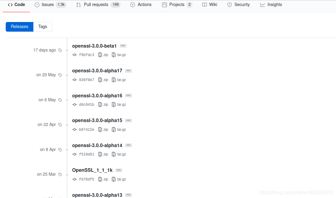 Releases · openssl/openssl · GitHub下载OpenSSL_1_x_x最新版的,因为Qt5.9只支持OpenSSL_1的环境,这里下载OpenSSL_1_1_1k