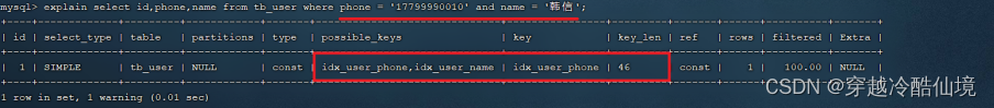 紧接着,我们再来创建一个phone和name字段的联合索引来查询一下执行计划