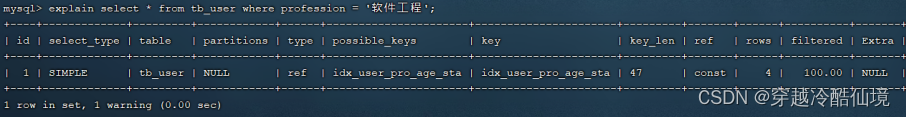 explain select id,profession,age, status from tb_user where profession = '软件工程'