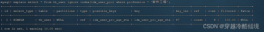 explain select * from tb_user ignore index(idx_user_pro) where profession = '软件工